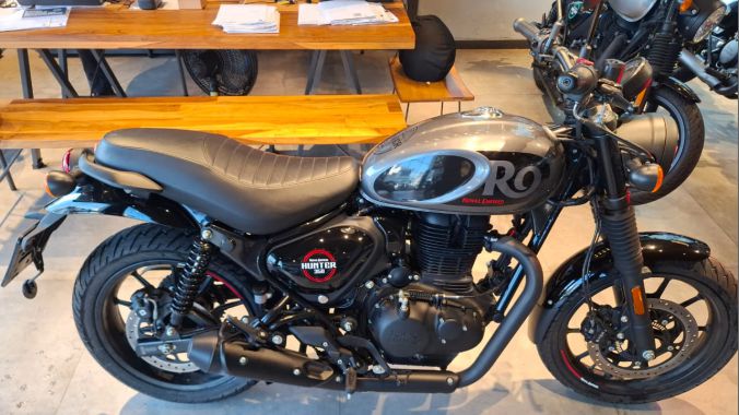 Royal Enfield Hunter 350, ano 2024/2025. Motocicleta estilo retrô moderno, com elementos clássicos combinados com toques contemporâneos. Unidade com apenas 2.465 km rodados e em perfeito estado de conservação. Acompanha manual do proprietário e chave reserva. Venha ver de perto!