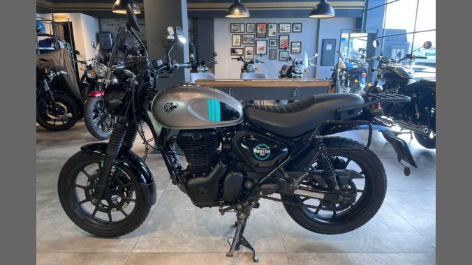 Royal Enfield Hunter 350, ano 2024/2025. Motocicleta de estilo retrô moderno, com elementos clássicos combinados com toques contemporâneos. Equipada com suporte traseiro para baú e alças do carona originais. Unidade com apenas 18.388 km rodados. Acompanha manual do proprietário e chave reserva. Venha ver de perto!