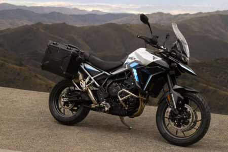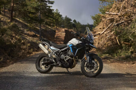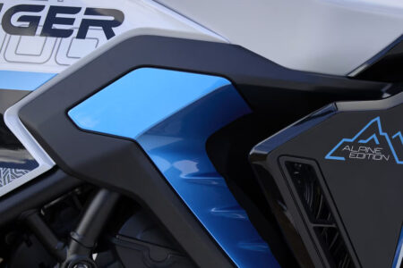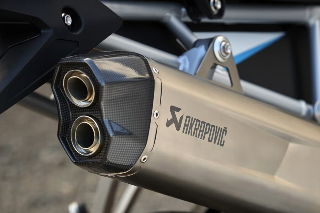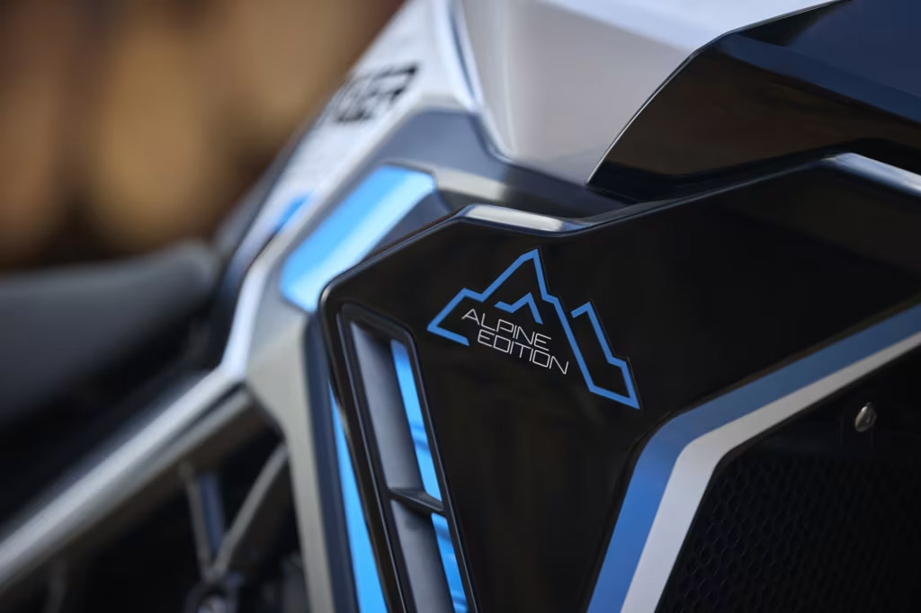 Exclusivo estilo Alpine, com pintura em Snowdonia White e Sapphire Black, com detalhes em Aegean Blue criam um visual adventure estradeiro elegante, silenciador Akrapovič e a suspensão Marzocchi aprimoram o controle e a recreatividade para o piloto.