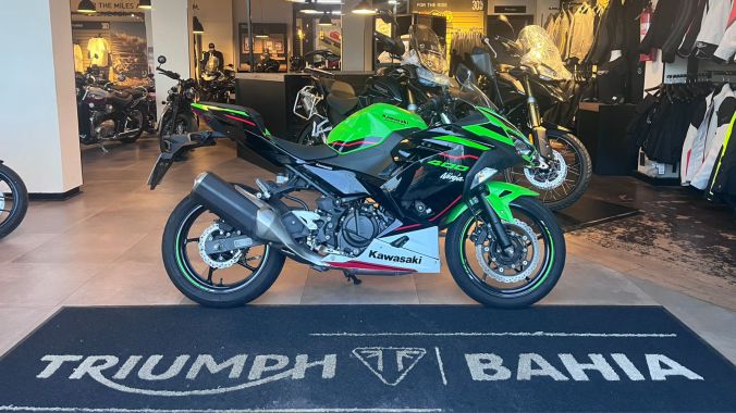 Kawasaki Ninja 400, ano 2022. Motocicleta esportiva de entrada, leve e ágil, elogiada pelo visual agressivo e bom desempenho para o segmento. Equipada com slider. Unidade em excelente estado, com apenas 4.866 km rodados. Acompanha manual do proprietário e chave reserva. Venha ver de perto e feche um excelente negócio!
