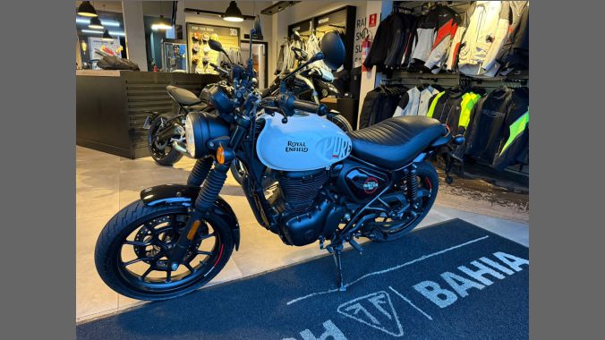 Royal Enfield Hunter 350, ano 22025. Motocicleta estilo retrô moderno, com elementos clássicos combinados com toques contemporâneos. Unidade com apenas 6.675 km rodados. Acompanha chave reserva. Venha ver de perto!