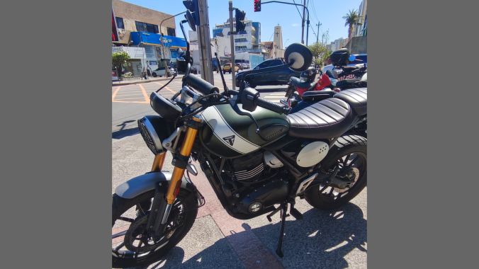 Triumph Scrambler 400X, ano 2024/2025, com apenas 11.700 km rodados! Motocicleta de estilo scrambler com 400 cc de pura potência, estilo e elegância. Com manual do proprietário e chave reserva. Aproveite esta oportunidade imperdível!