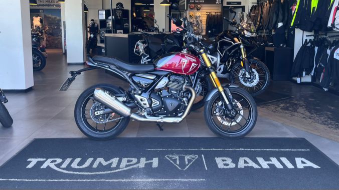 Triumph Speed 400, ano 2024, com apenas 4.041 km rodados! Motocicleta de uso misto, em excelente estado! Acompanha manual do proprietário e chave reserva. Aproveite esta oportunidade imperdível!